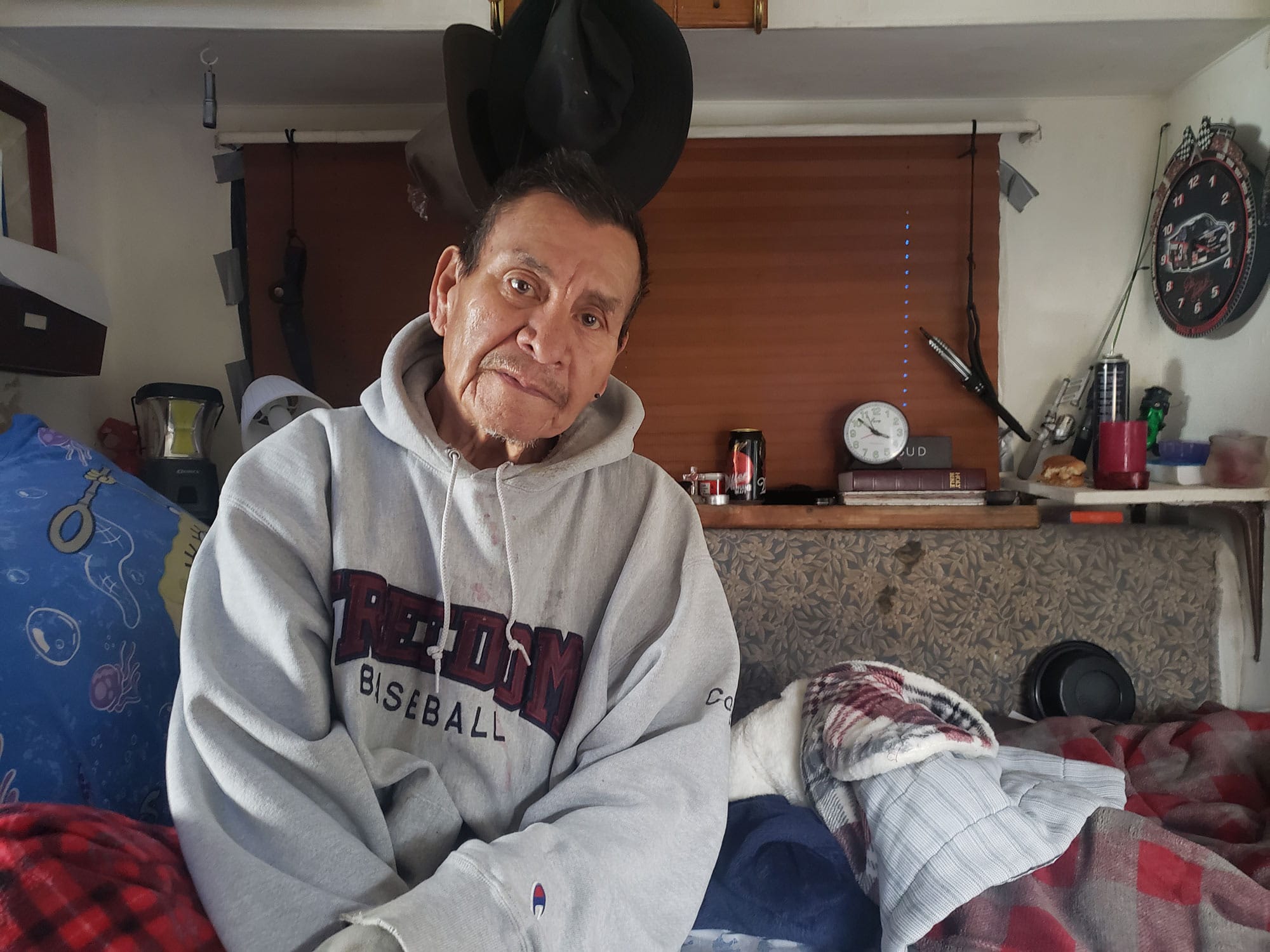 There are a number of seniors who live at the boat launch. Jim Nelson, 71, lives with his wife Pam in an RV in a tidy corner of the parking lot. His son Eric lives next to them in another RV. Eric recently got a new job and the family’s long-term plan is to buy a piece of land to live on once they can afford it.