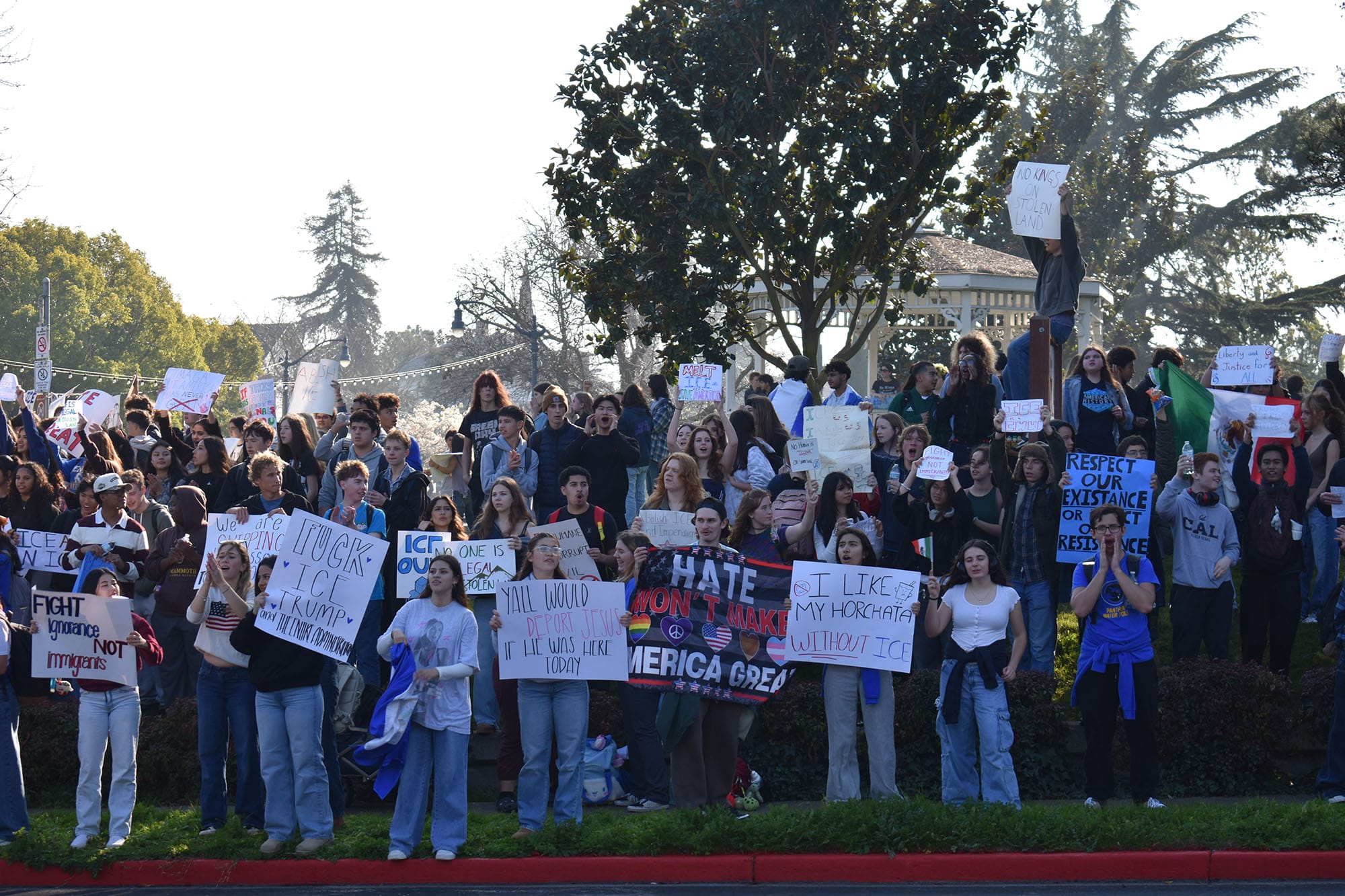 BENICIA – An estimated 400 students from Benicia High School walked out of class on Wednesday afternoon to protest the Trump Administration and the actions of U.S. Immigration and Customs Enforcement.