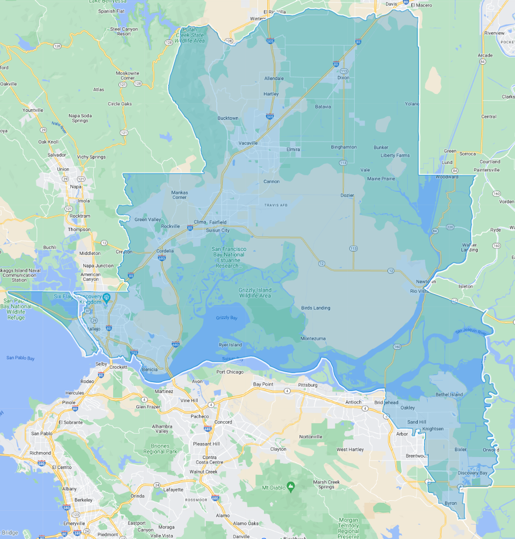 The fifth supervisorial district of Solano county covers the Southeastern area of the county that contains large sections of rural land, the city of Rio Vista and portions of Fairfield, Suisun City and Vacaville.
