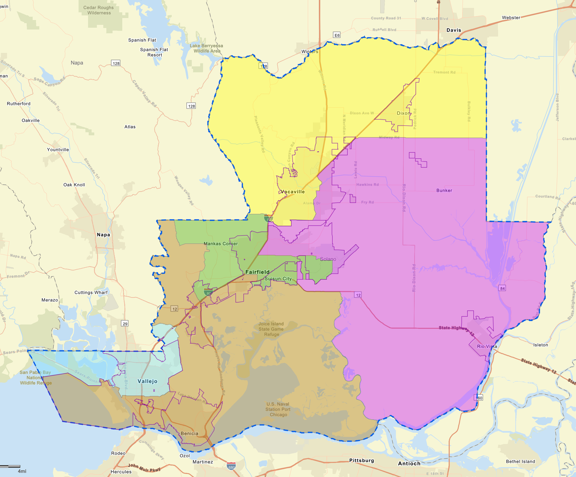 The second supervisorial district of Solano County includes residences in Vallejo south of Georgia Street, Mare Island, Benicia, Cordelia and Southern Fairfield.