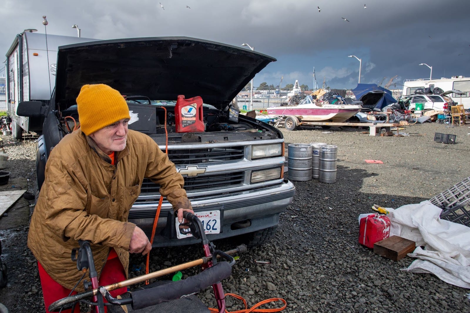 Harvey Kenny, a senior who lives at the boat launch, said last week that he would have left sooner but his truck broke down. An RV pushed it into the center of the parking lot on Monday so a friend with a tow hitch could pull it elsewhere.