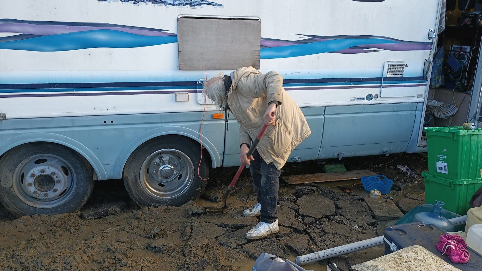 Roos was helped by other camp residents. His truck and his RV were gone the following morning.