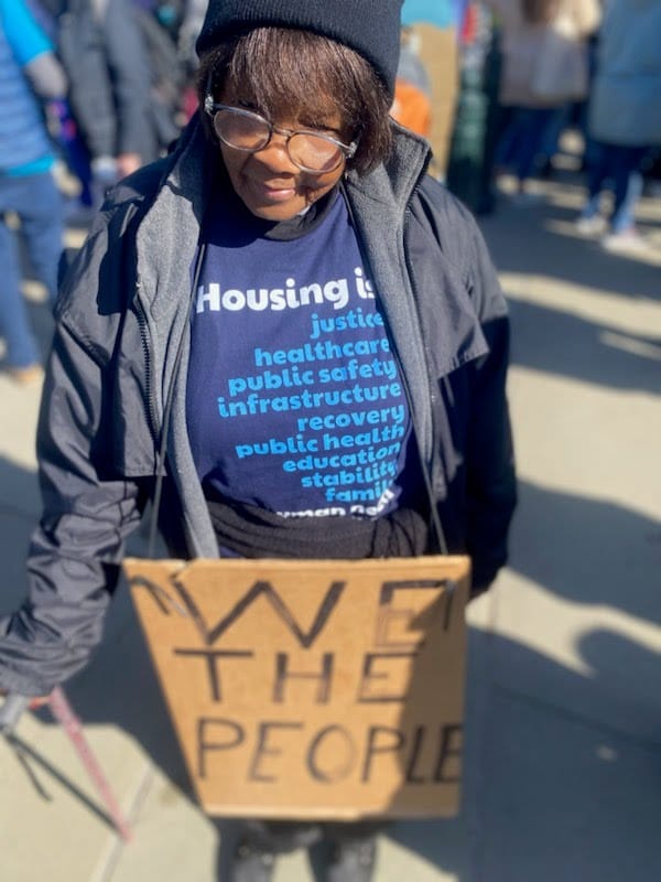 Two people attending a rally in Washington D.C. as the U.S. Supreme Court heard arguments on a pivotal homelessness case on Monday. Photos courtesy Jennifer Artz.