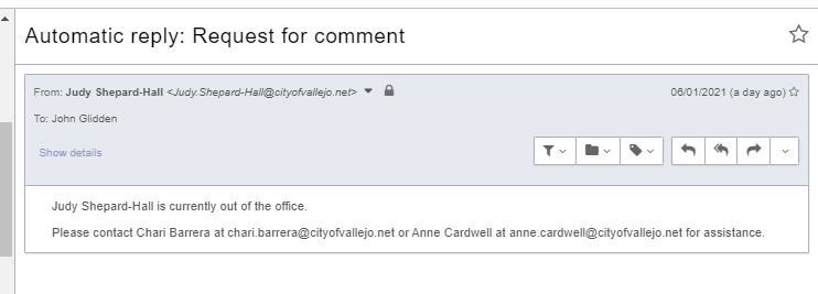 Shepard-Hall, who joined the city of Vallejo in October 2018, was one of 10 senior-level City Hall employees who signed a March 2020 letter to the Vallejo City Council expressing support toward Nyhoff.