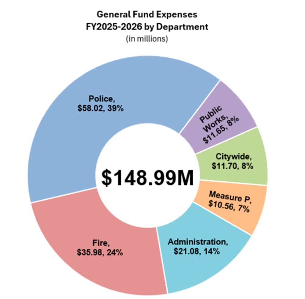 This budget’s expenditures spent the most on the Vallejo Police Department at $58.02 million or 39% of the general fund. The proposal kept the general fund at 7.7% higher than last year’s, primarily due to rising salaries and benefits and a $6.54 million increase from Measure P funding.
