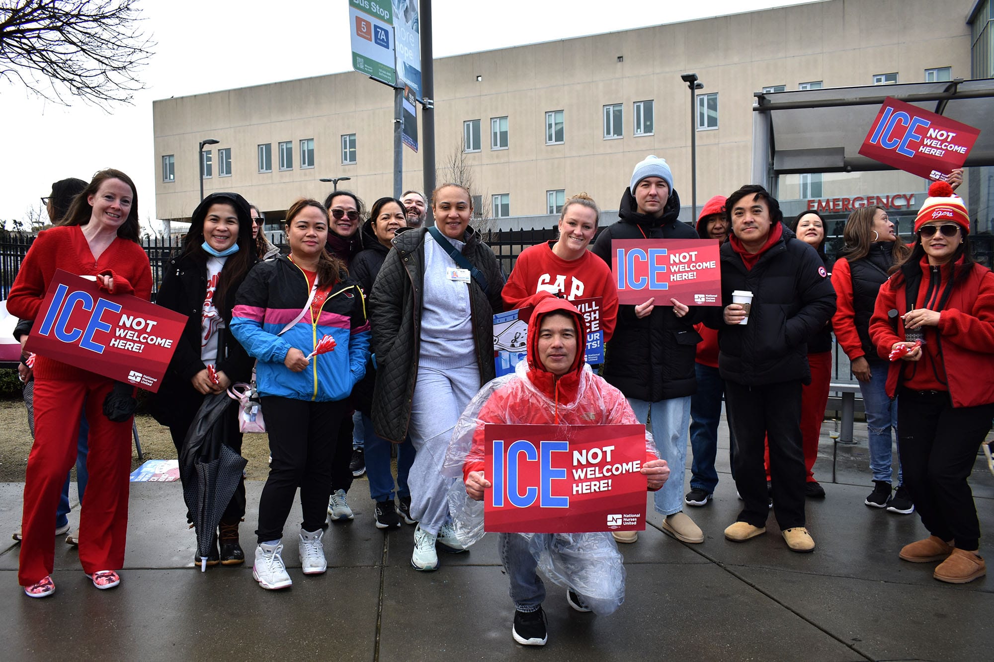 VALLEJO – Registered nurses at Kaiser Permanente in Vallejo joined their union for a week of action to declare U.S. Immigration and Customs Enforcement a public health threat and demand that hospitals provide clear guidance on how to protect their patients if ICE agents enter the facility.