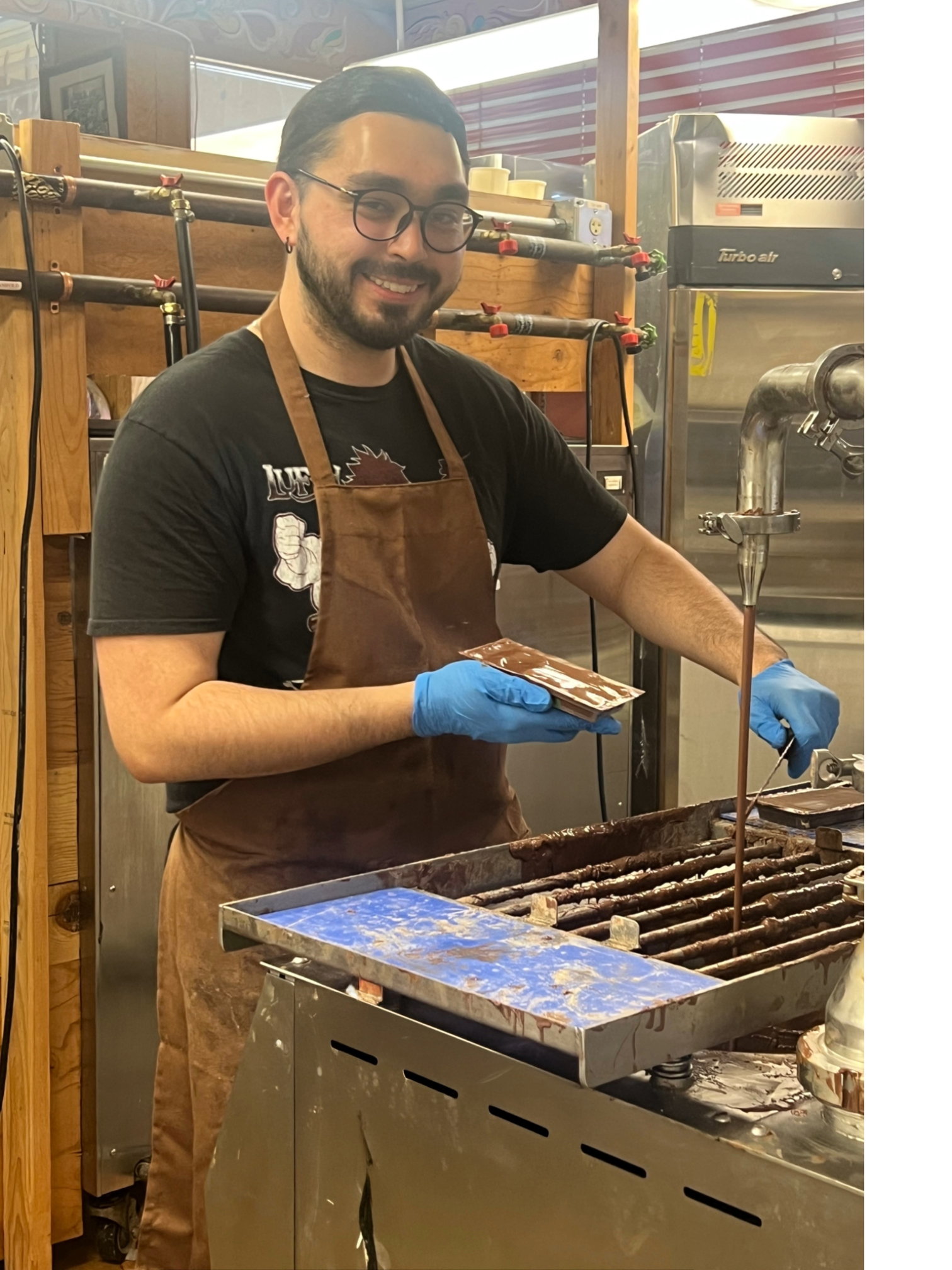 Though he’s relatively new to candy-making, Isaiah has already developed a favorite part of the job. “I really like making the chocolate bars,” he said. “You start with nothing, and within an hour, you’ve created something from scratch. It’s a cool process.”